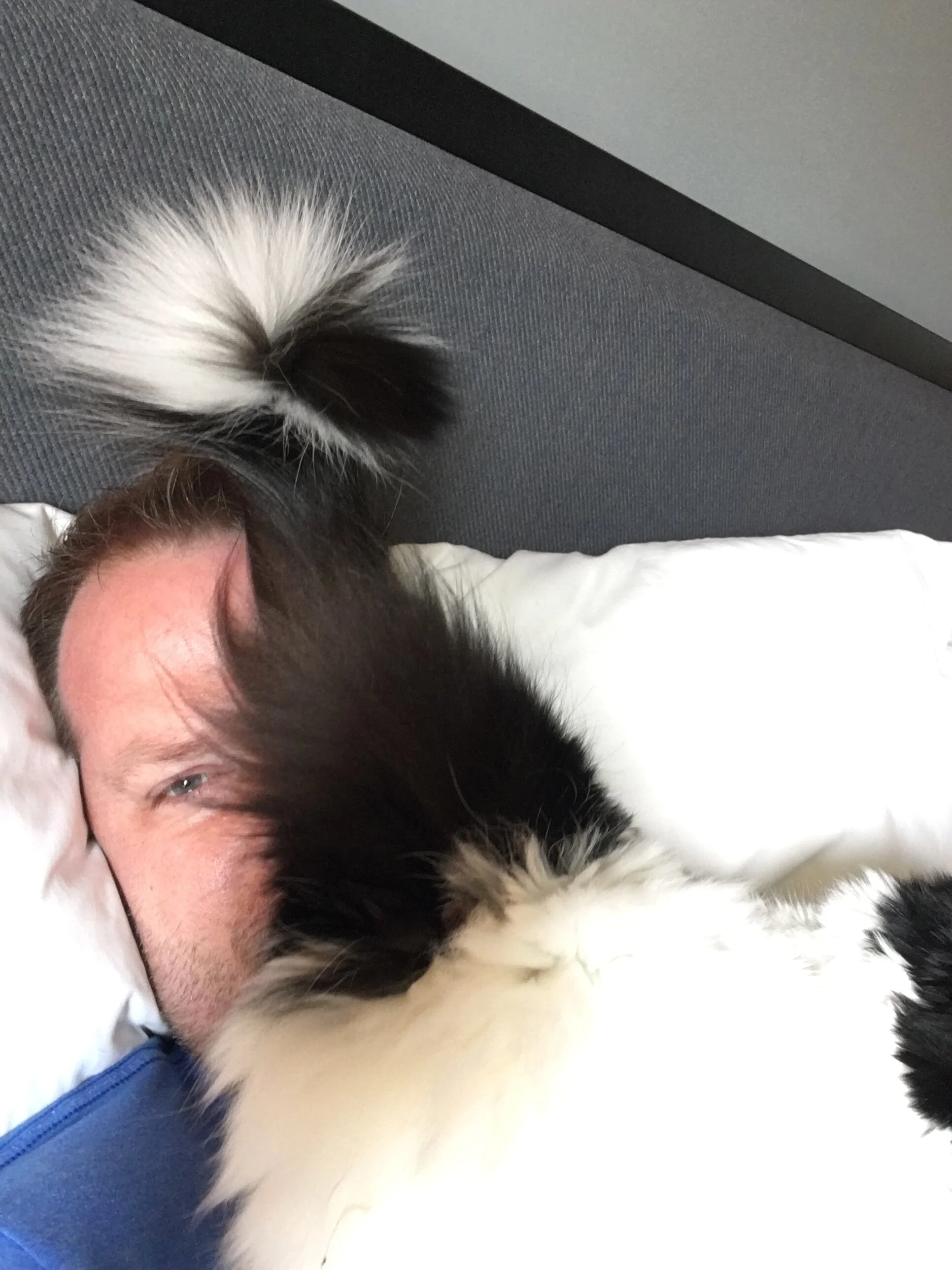 You can’t visit my About section without getting to know me on a deep, personal (maybe too personal) level, can you? Let’s begin by telling you I have 2 cats, and one (southern half of cat pictured), enjoys sitting on my head from time to time.